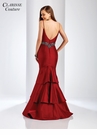 Sometimes less really is more. Clarisse couture style 4922 is a deceptively simple mermaid prom dress that has plenty of sophisticated details. Made of a special shimmering mikado fabric in Navy blue or Burgundy Wine, the bodice features spaghetti straps, a plunging neckline and scoop back. The waist is highlighted with beautiful multicolored beaded that compliments either color. The back of the dress has an elegant tiered train. Center back zip closure, available in sizes 0 through 20.