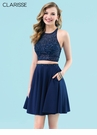 Clarisse Homecoming 3958 is Navy Two-Piece, this top is embellished with Navy jewels front and back with crossing straps in the back. The skirt has a jewel waistline and is made from Chiffon so it's lightweight and flowy. The best features on this incredible Two-Piece are the built-in cups in the top and the skirt has functional pockets good for essentials.