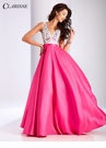 SOLD OUT!!! Clarisse made this dress for all the girls who want to feel pretty in pink! Feminine and pink is what 3197 is all about. A deep v is found in the front and back of the dress, displaying your beautiful neck line. Pink and purple flowers are embroidered over the front and back. Satin is constructed into a full ball gown, a skirt you’ll want to sashay all night. This is a wonderful dress for all body types. Style 3197 is exclusive in the cerise and multi-color. You may purchase this dress in sizes 0 through 24.