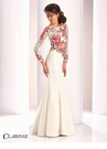 SOLD OUT!!! Clarisse 4811 is a feminine boho lace two piece prom dress. The long sleeve top is covered with embroidered pink roses that trail onto the waistband of the mermaid skirt. A high keyhole on the back is flirty without revealing too much skin. This style would make a romantic look for prom with a messy braided up do and soft smoky eye, or even a non-traditional look for a bride! Available in sizes 00 through 20.